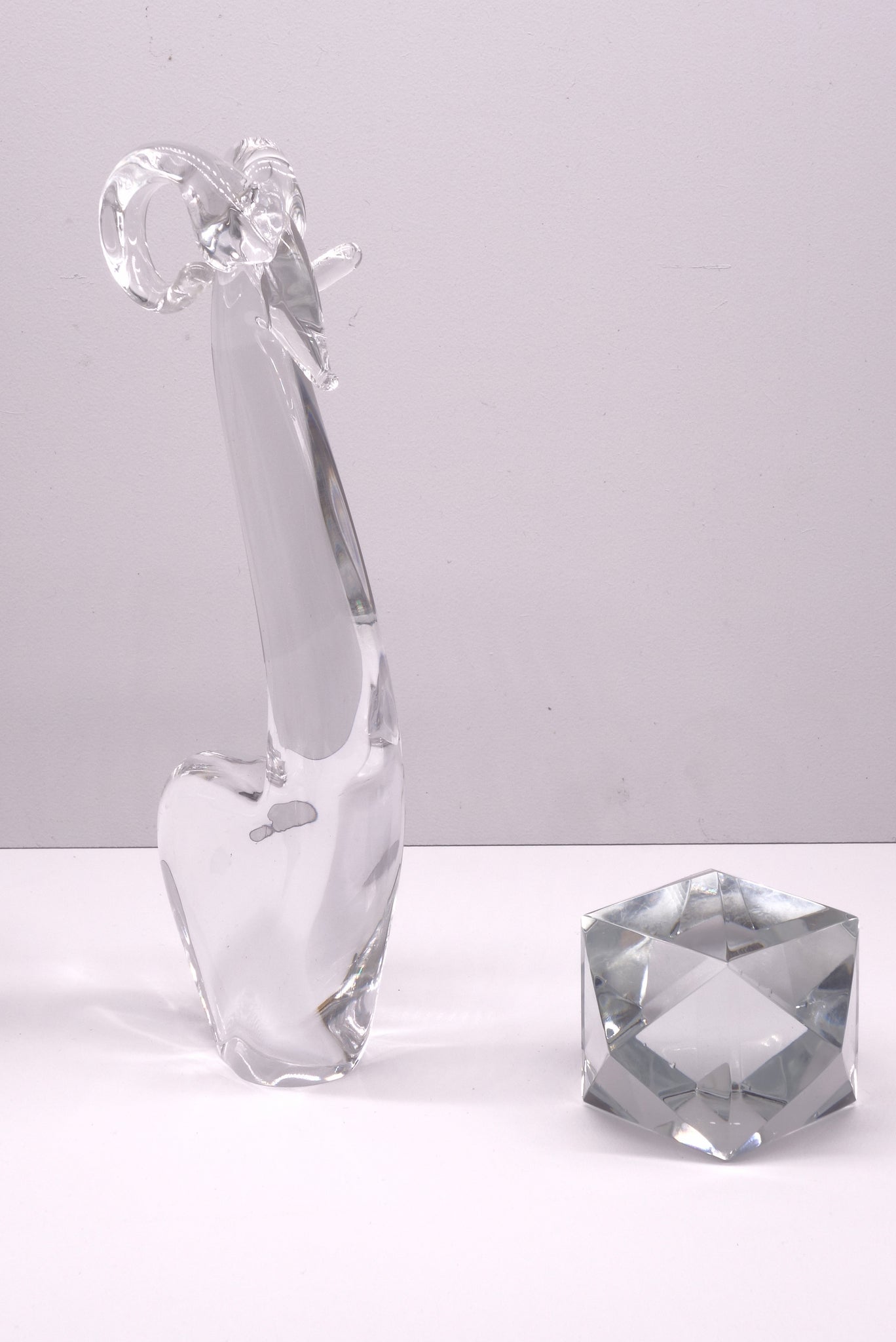 A vintage crystal glass ram "Aries" sculpture - 11inch tall.
