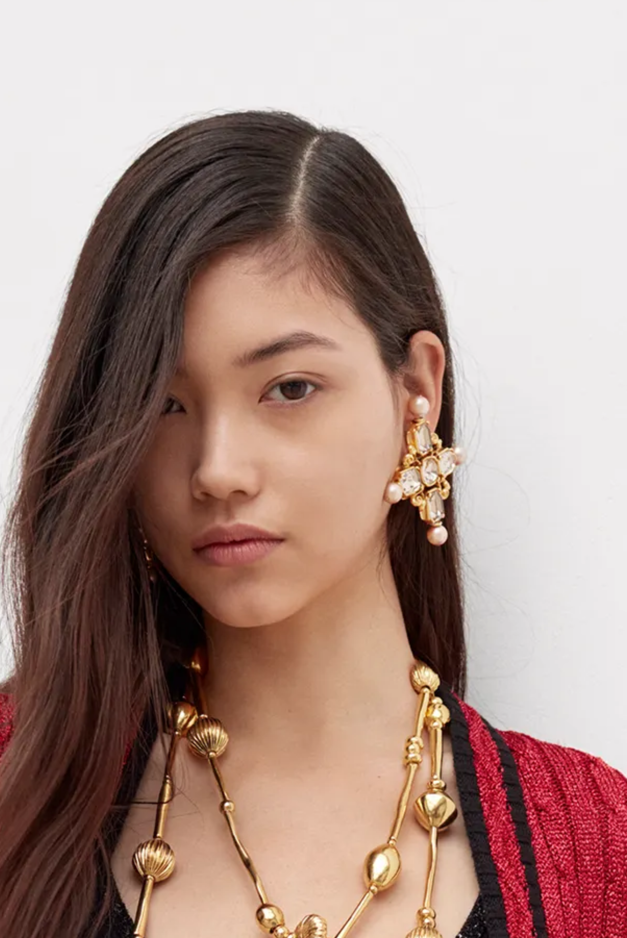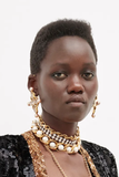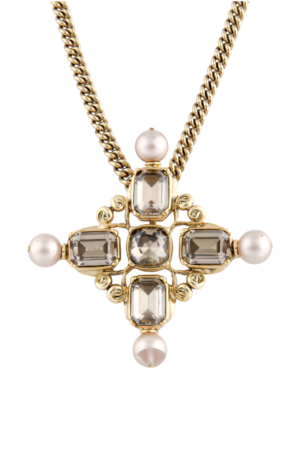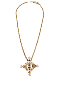 Saint Laurent Gold Gemstone Pearl Gripoix Style Cross Pendant Necklace