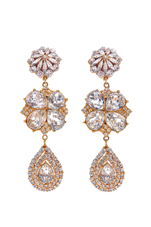 Yves Saint Laurent Gold Diamond Crystal Clover Chandelier Earrings